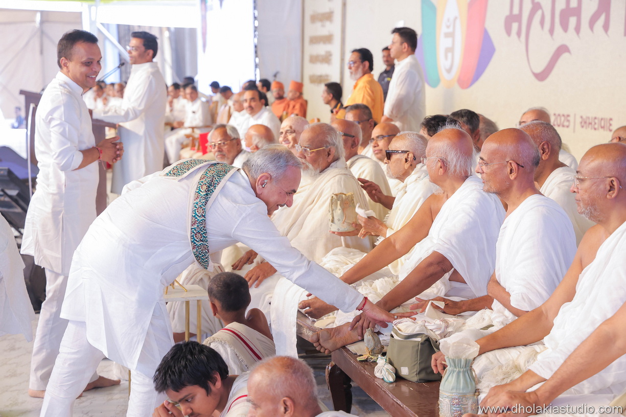 The event culminated in the collective chanting of the Navkar Mantra by thousands, followed by distribution of Navkarwali, Rakshapotli and prabhavna (sacred offerings). Boiled water for devotees doing Ayambil Oli and Sadhu bhagwants and snacks for all.