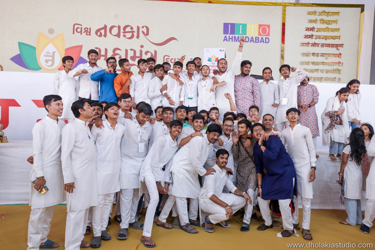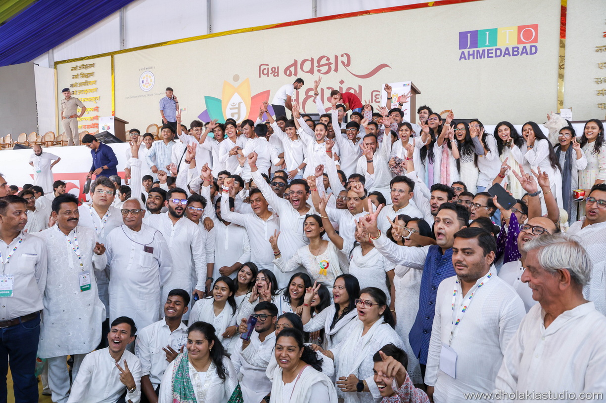 A dedicated team of over 300 volunteers from JITO Ahmedabad, Ladies Wing, Youth Wing and JBN leaders ensured seamless coordination. The event witnessed a record-breaking participation of over 25,000 devotees at Ahmedabad’s GMDC Ground chanting Navkar Mahamantra, the essence of faith, representing right knowledge, philosophy, conduct and the path to salvation for all.