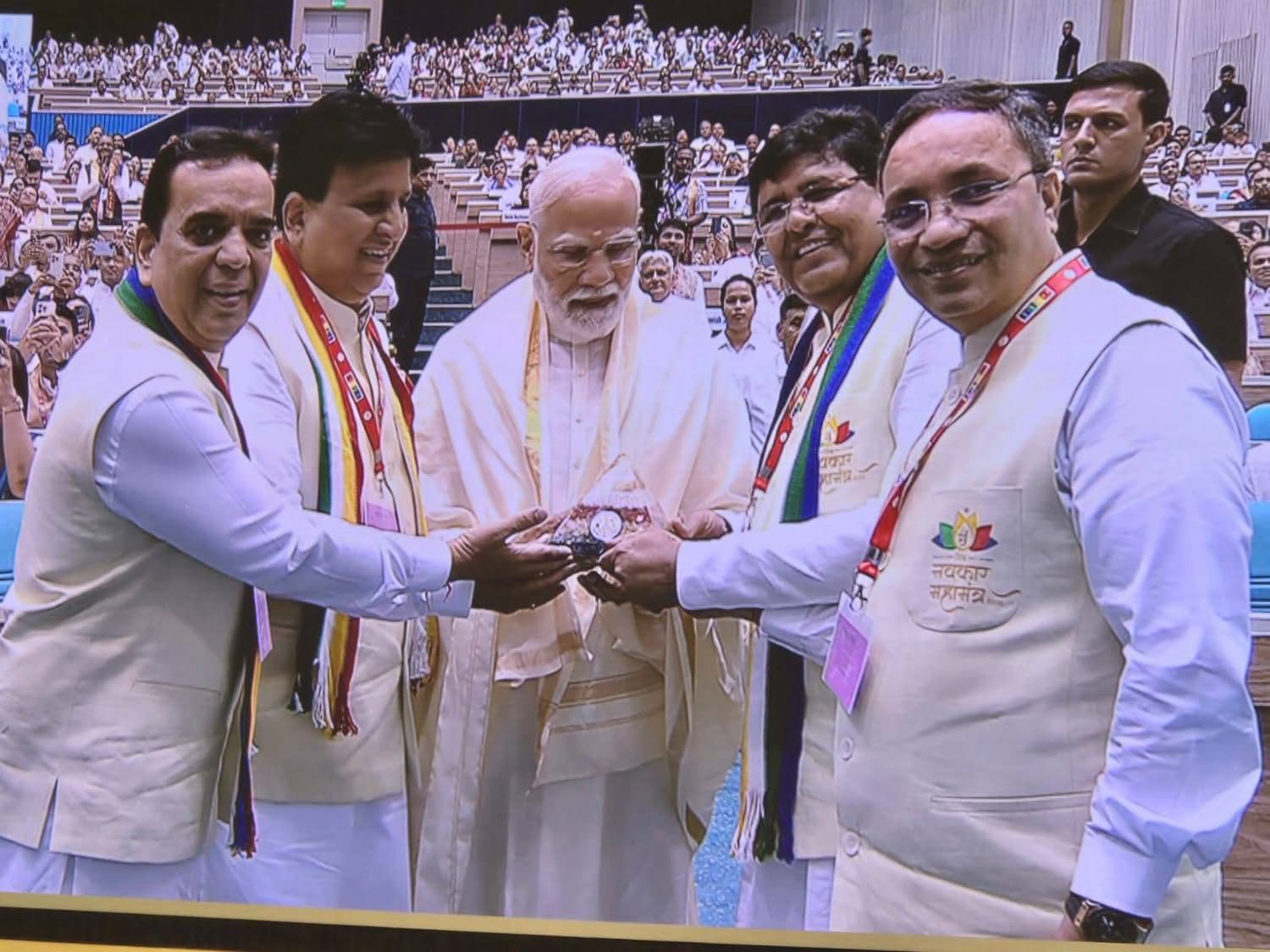 The dignitaries were honored with stoles and mementos by JITO Ahmedabad leaders.