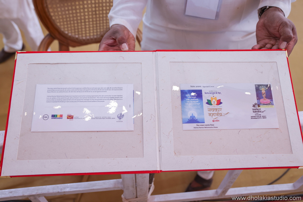The Department of Posts released a special philatelic cover commemorating 2800th Nirvana Kalyanak of Lord Parshvanath on “Vishwa Navkar Mahamantra Day”. The first copy was presented to CM Bhupendra Patel.