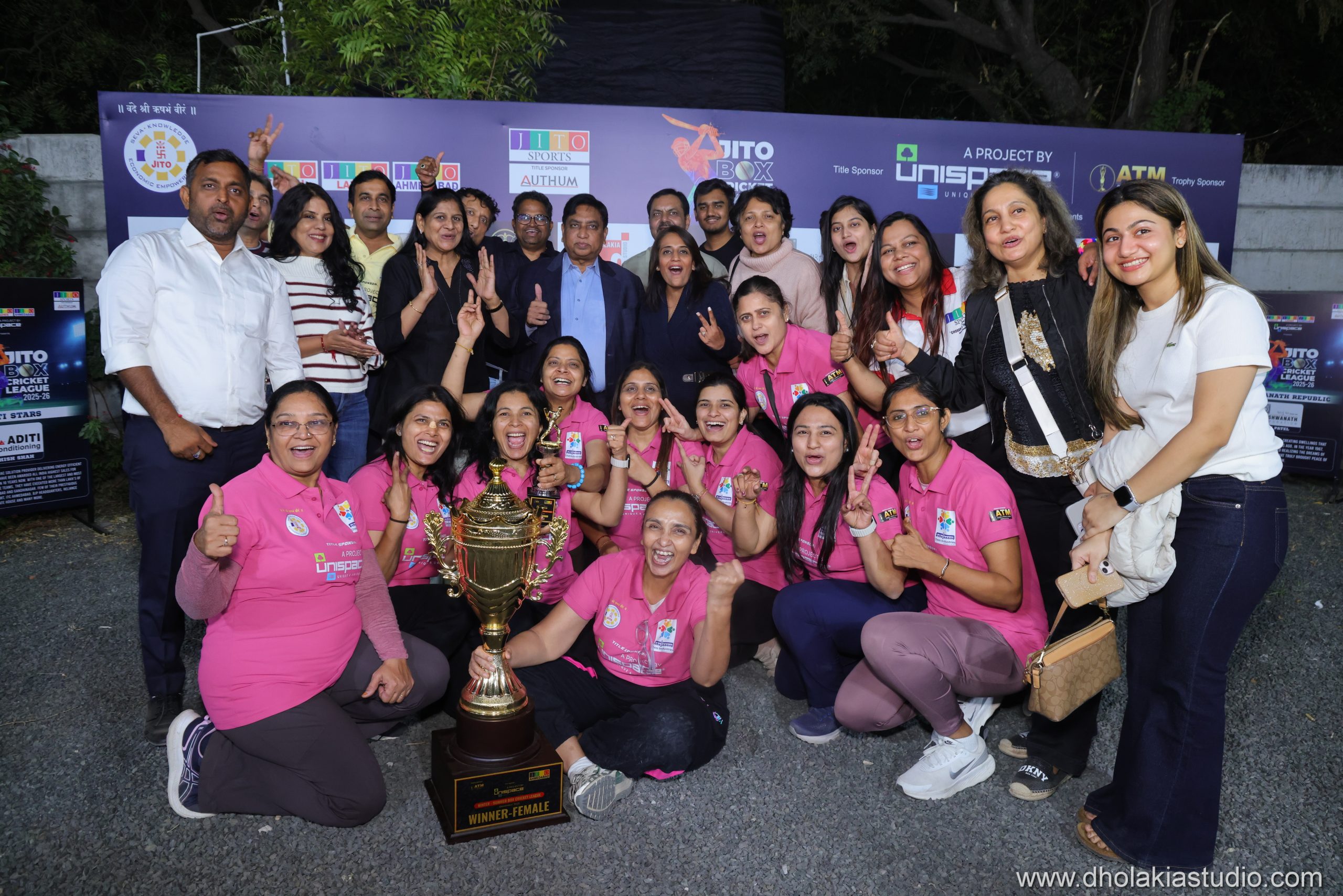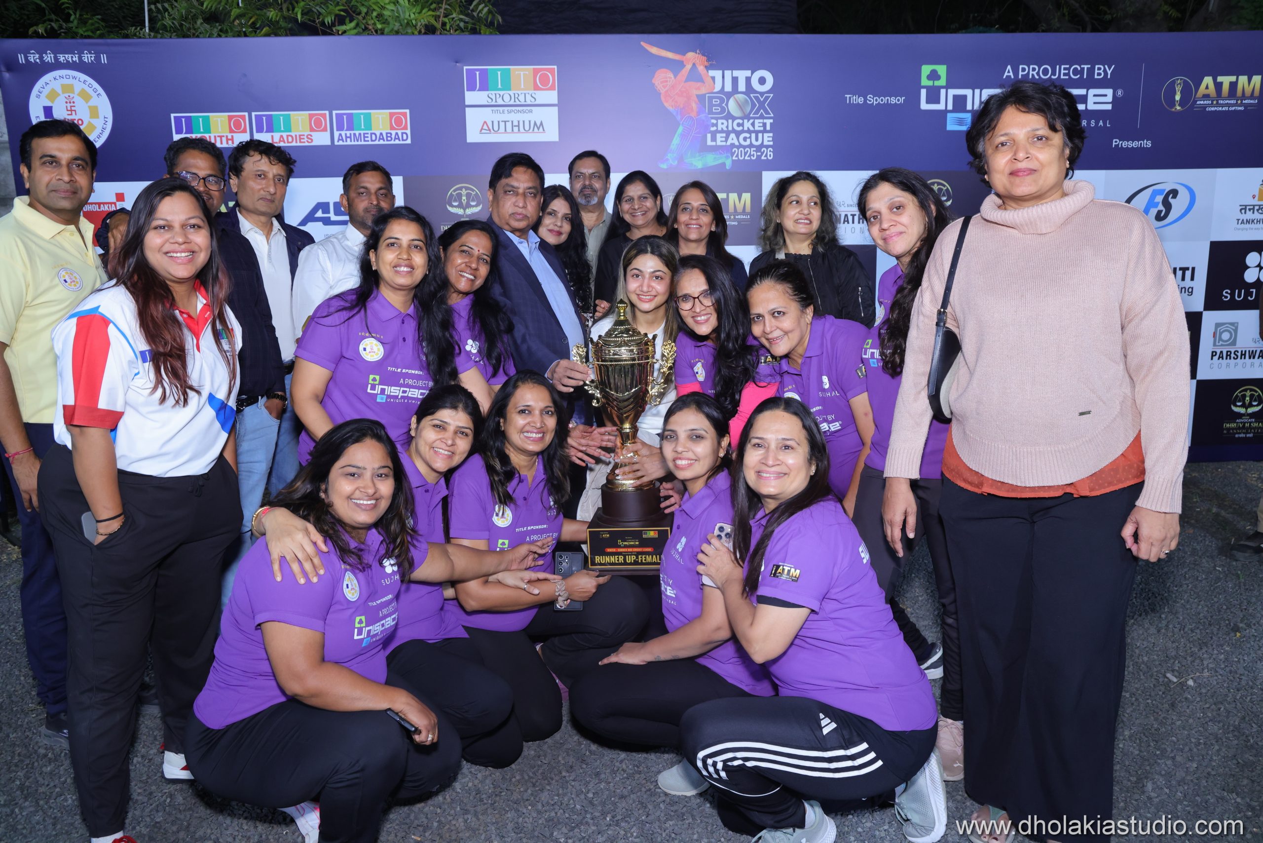 The JITO Box Cricket League 2025–26 concluded on a high note on December 19, 2025, after two days of electrifying matches held from December 17 to 19 at Freehit Box Cricket, Science City. The tournament witnessed enthusiastic participation from over 180 players, comprising 12 men’s teams and 3 women’s teams. It also drew a remarkable audience of nearly 800 spectators. The event was marked by high energy, strong teamwork and exciting cricket action throughout.